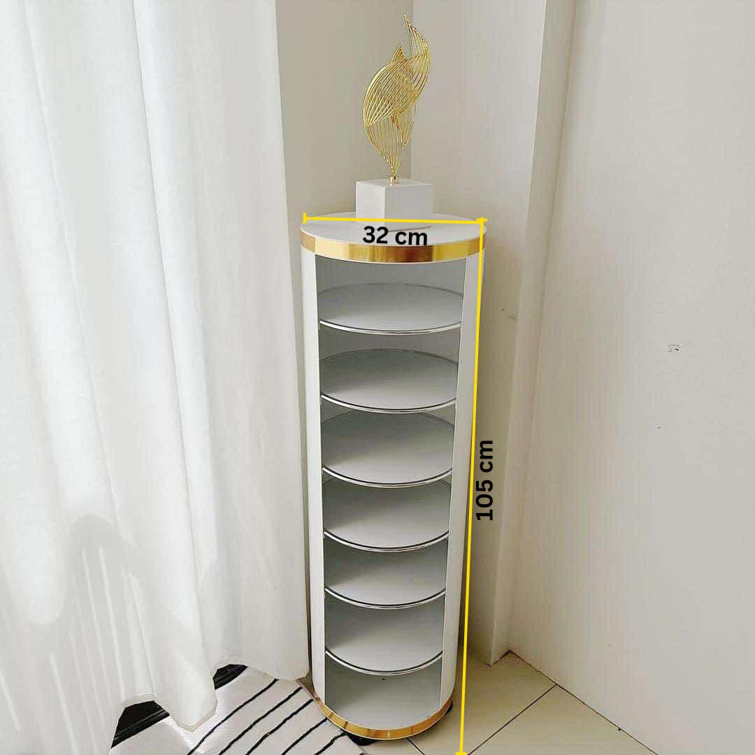 Cylinder Rotating Shelf in Gold & White